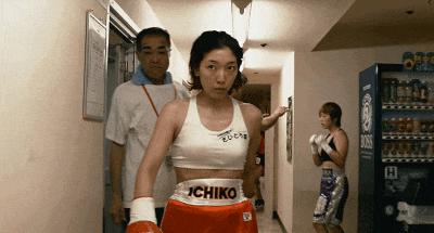 影片后半段,经历无数次重击后,疼痛感终于唤醒了麻木许久的一子,她敲开拳馆的门,决定练习拳击,参加比赛。
