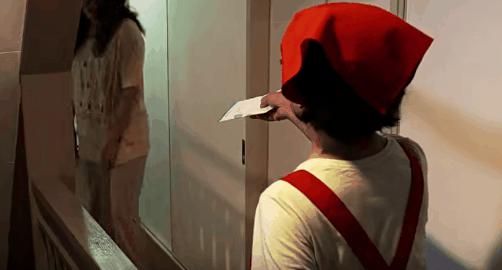 下一个镜头里,我们看到她把自己的身体往前倾斜了许多,这让同事再也没有机会。