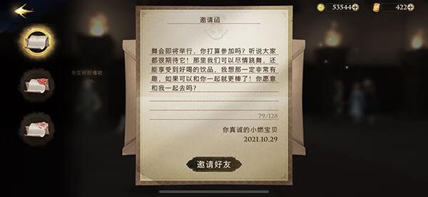 2、点击“+”会出现一个邀请函,玩家可以点击“邀请好友”;