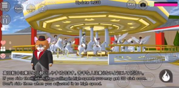 不过需要提醒各位的是,如果把旋转木马的回转速度调到了比较高的档位,而后再乘坐旋转木马,就很容易让玩家出现晕3D的情况。