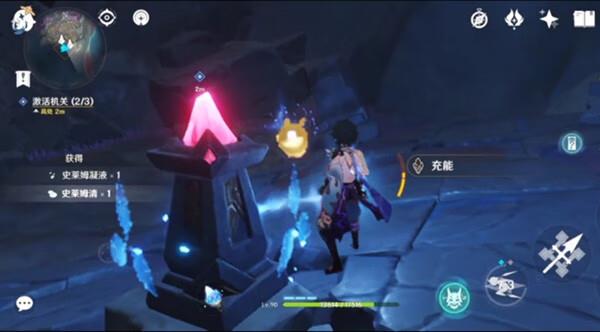 我用主角两级。就激活了,你得找到那个源头激活,别对着机关。把源头清理了有史莱姆,打完了就激活机关。