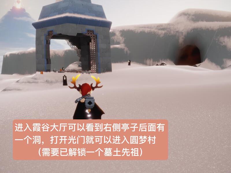 1、进入霞谷大厅看到右边的山洞,需要解锁一位墓土先祖才能进去;
