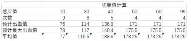 接下来是对切腹以后对黑龙出血的攻击次数测试,测试数据见下表。