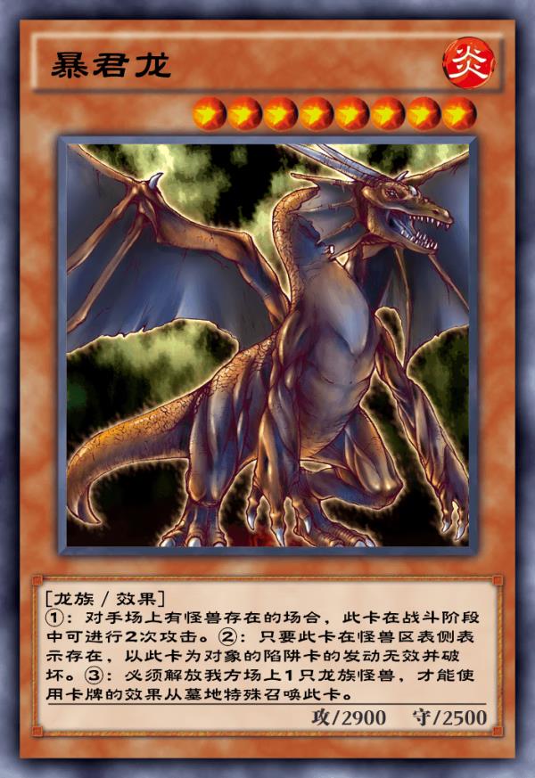 暴君龙攻击后如果对方场上仍存在怪兽,“暴君龙”则可以再次进行1次攻击,利用此效果压制场面吧!
