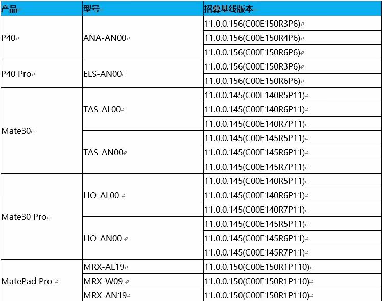 型号清单为 ANA-AN00、ELS-AN00、TAS-AL00、TAS-AN00、LIO-AL00、LIO-AN00 。