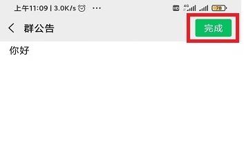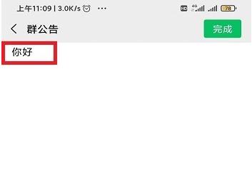 打开群公告后,在群公告的输入框中随便输入“你好”文字。