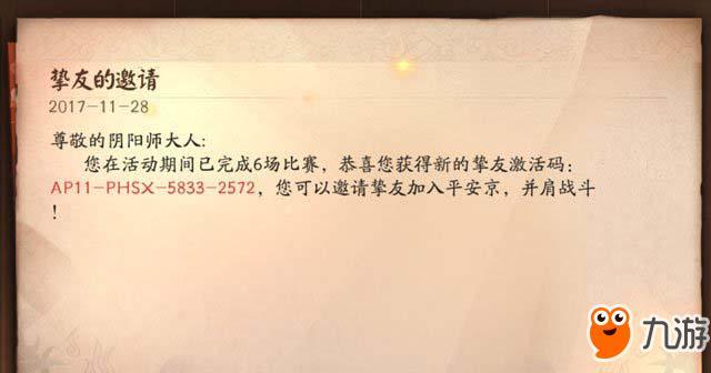 所有参加首测的玩家在资质赛对战的局数达到6局、且人品值不低于90时,即会获得一枚挚友激活码